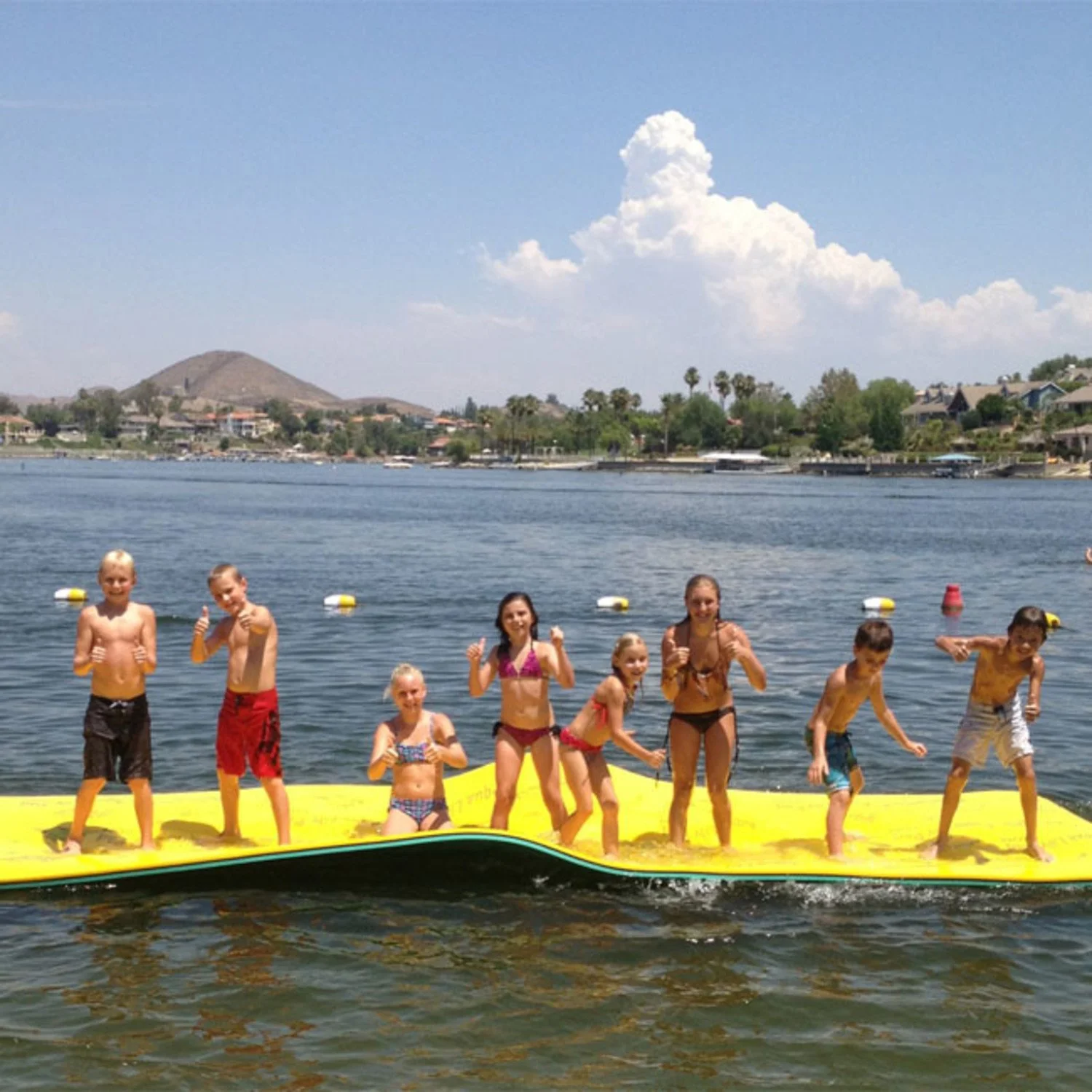 6ft x18ft pad. Can accommodate 9 to 10 adults. The ultimate water playground for the entire family. Relax on the country’s favorite water toy.